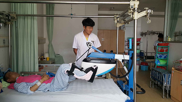 智能下肢康復(fù)器材:智能下肢康復(fù)訓(xùn)練機(jī), 具有患者從完全被動(dòng)訓(xùn)練階段到主動(dòng)和被動(dòng)訓(xùn)練相交叉的助力訓(xùn)練階段到完全的主動(dòng)訓(xùn)練階段到初期主動(dòng)力量訓(xùn)練階段的患者康復(fù)過(guò)程。